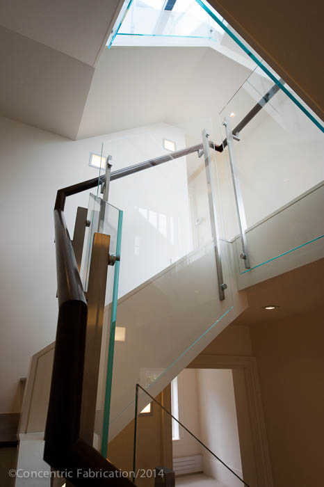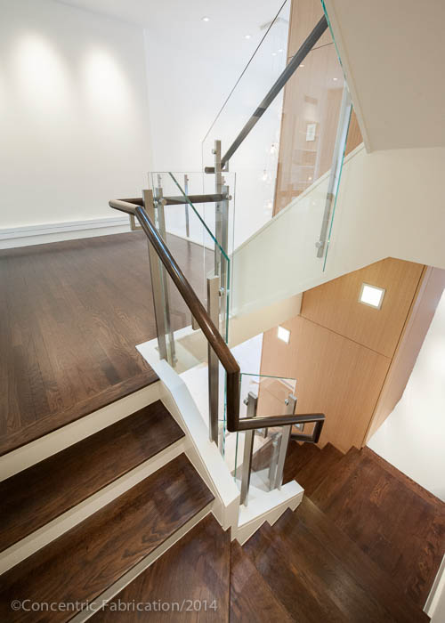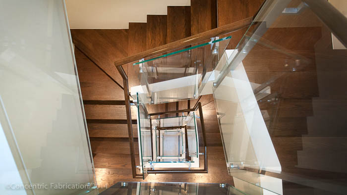 In this completed five story stairway and balcony for a five story row house in Boston's Beacon Hill neighborhood, we worked with Sea-Dar Construction and James Dayton Design. Concentric began the job by creating a series of as-built drawings of the existing stair, some of which dated back seventy years. Once the as-builts were completed, we were able to work with the design group on layout. Each run of stairs was a unique condition, which would require a unique design for each run. No two posts on this project were alike.