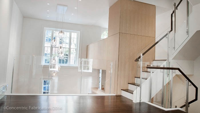 The design group gave us basic parameters to follow and we created the layouts and built drawings. Working with the design group, these drawings were refined and the approval was given to create and install samples. Concentric delivered these and met with contracting partners in glass and millwork.